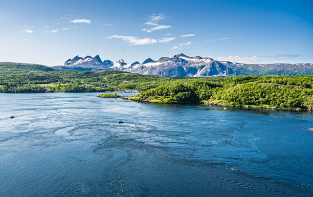After exploring the mountains we headed back to the coast and carried on northward coming to the bridge over the Saltstraumen which is a narrow strait with one of the strongest tidal flows in the world reaching up to 20 knots. We timed our visit with an incoming tide and although you can definitely see the strength of the current from the bridge above, it’s not the most spectacular show.