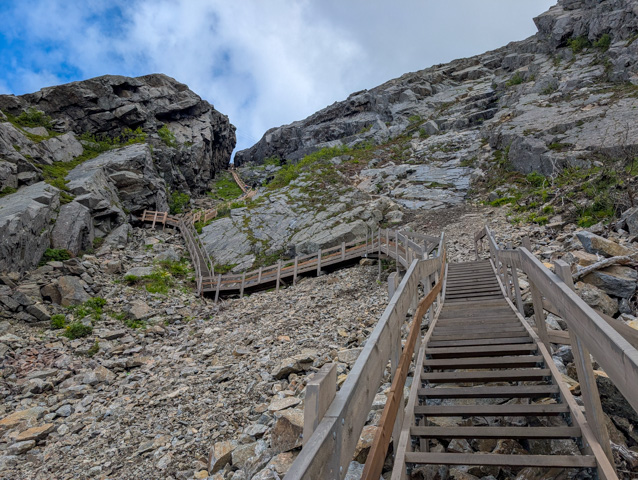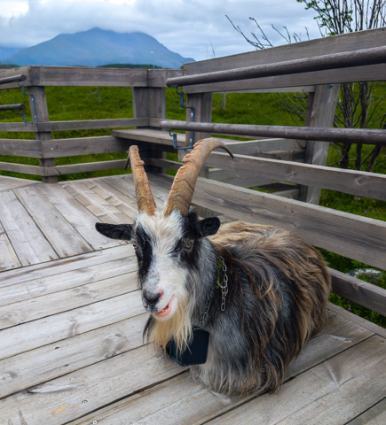 We drove round the island stopping first at the visitor centre, whose boardwalk was being guarded by several very large horned goats that we edged ourselves nervously past, before then visiting the Vega Stairs (vegatrappa).