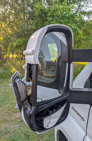 I managed to patch up our wingmirror, gluing the protector back together and all it needed was a new bulb in the indicator to be roadworthy which we managed to source easily enough from an autoparts store.
