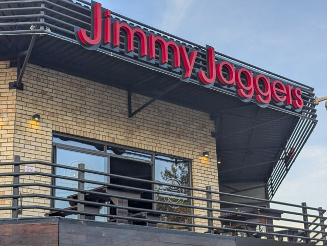 Our introduction to South African night life was at a bar called “Jimmy Jaggers” which seemed to be the most lively place in town. We had a fantastic burger each and a much less interesting beer – Castle Light – which we won’t be having again.