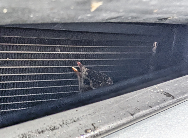On our return to Clarens we went to fill up with petrol and with the help of the attendant (no self service filling stations in South Africa) we managed to get our hitchhiking bird out of the grill. I moved him into the shade to recover but I think sadly his chances of survival after his ordeal were probably low.