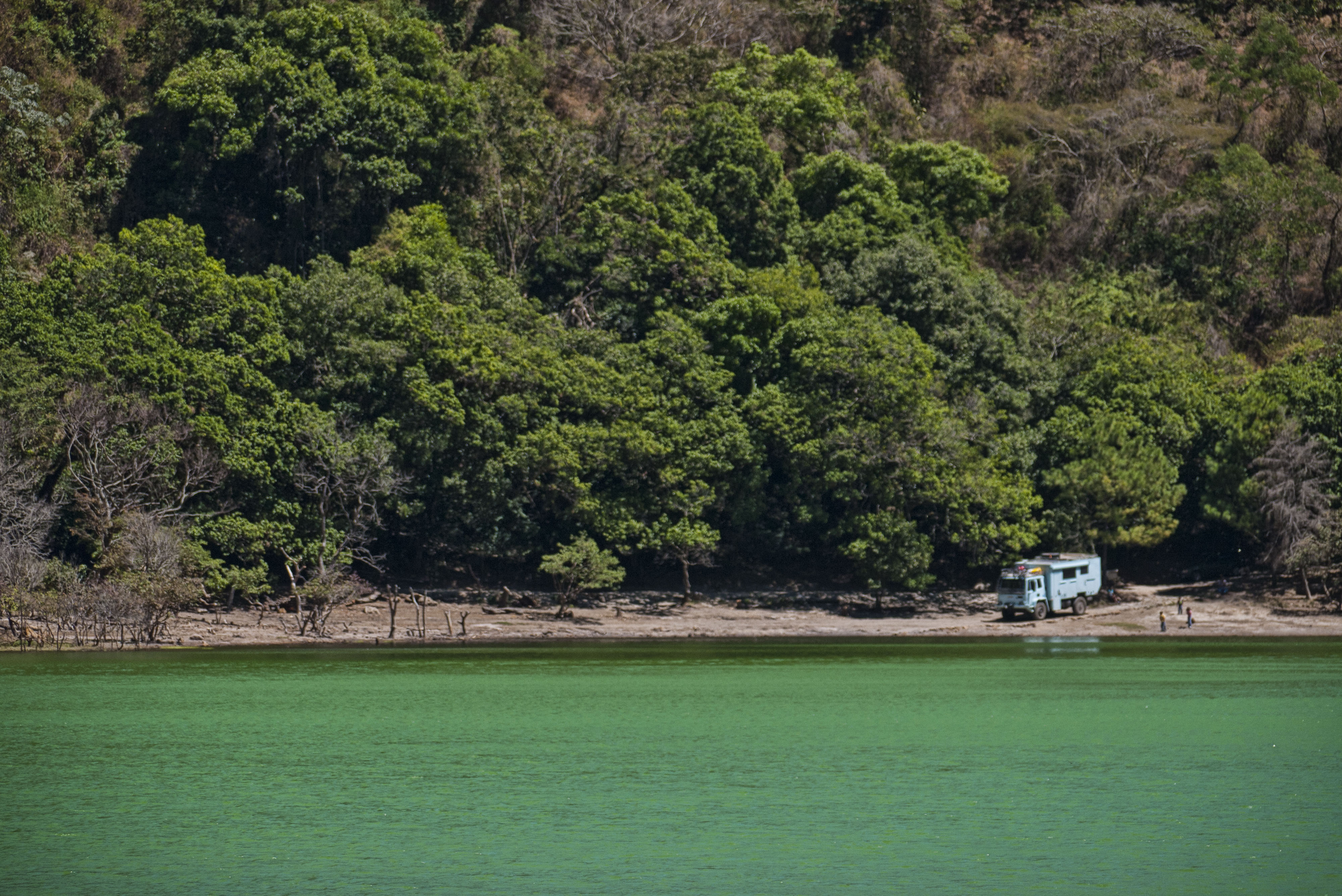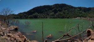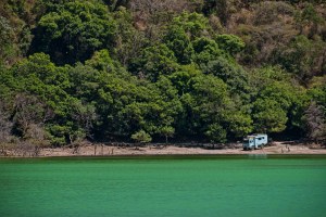 We reached the small town of Alegria at just over 1000m and drove through and up a very steep and cobbled road to the crater of the Tecapa Volcano. This is called the Laguna de Alegria and is a popular tourist spot. We paid the $1 entry fee and this entitled us to camp the night there. The water of the lake is a vibrant green and the water itself is a bit sulphurous.