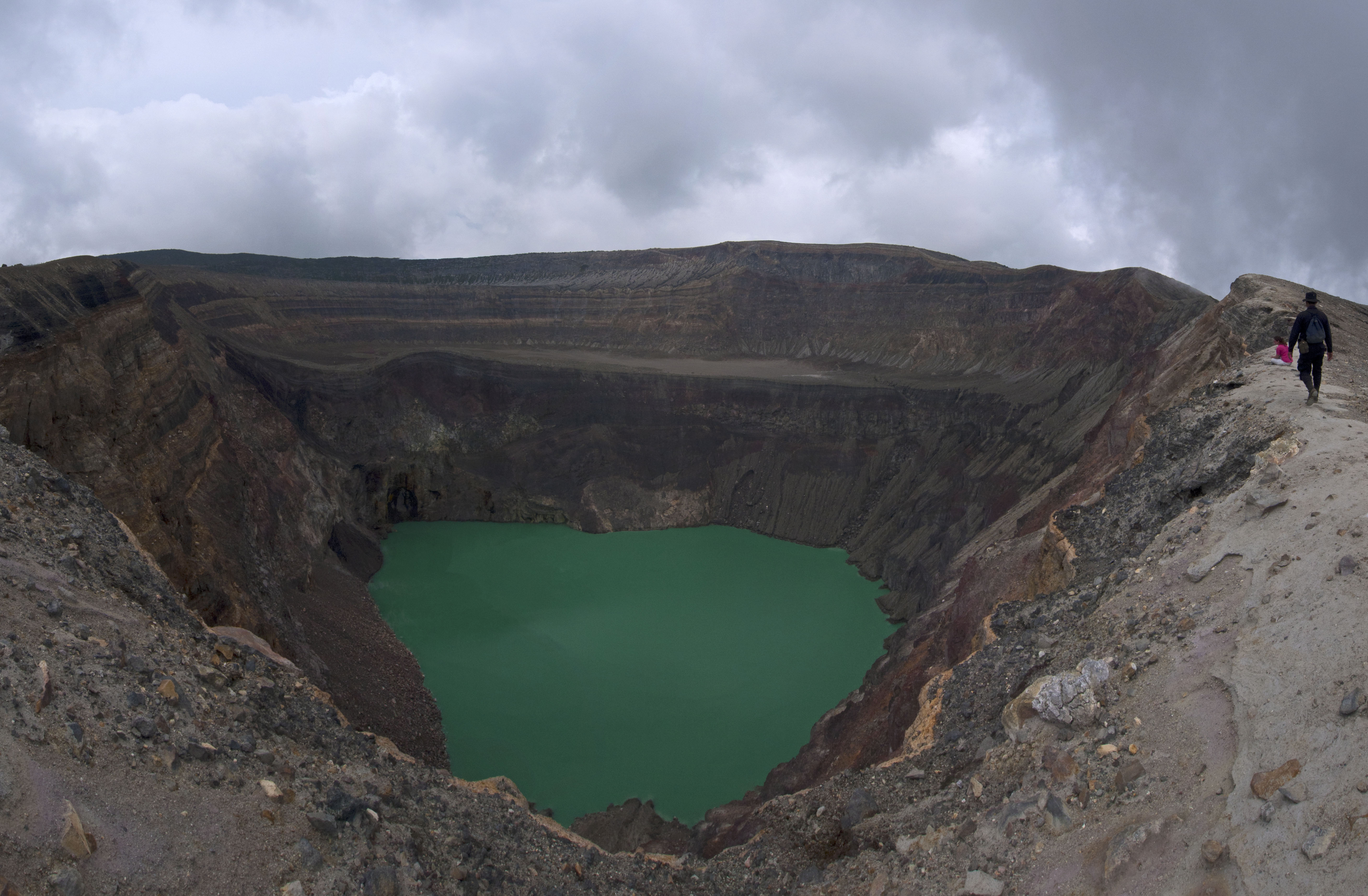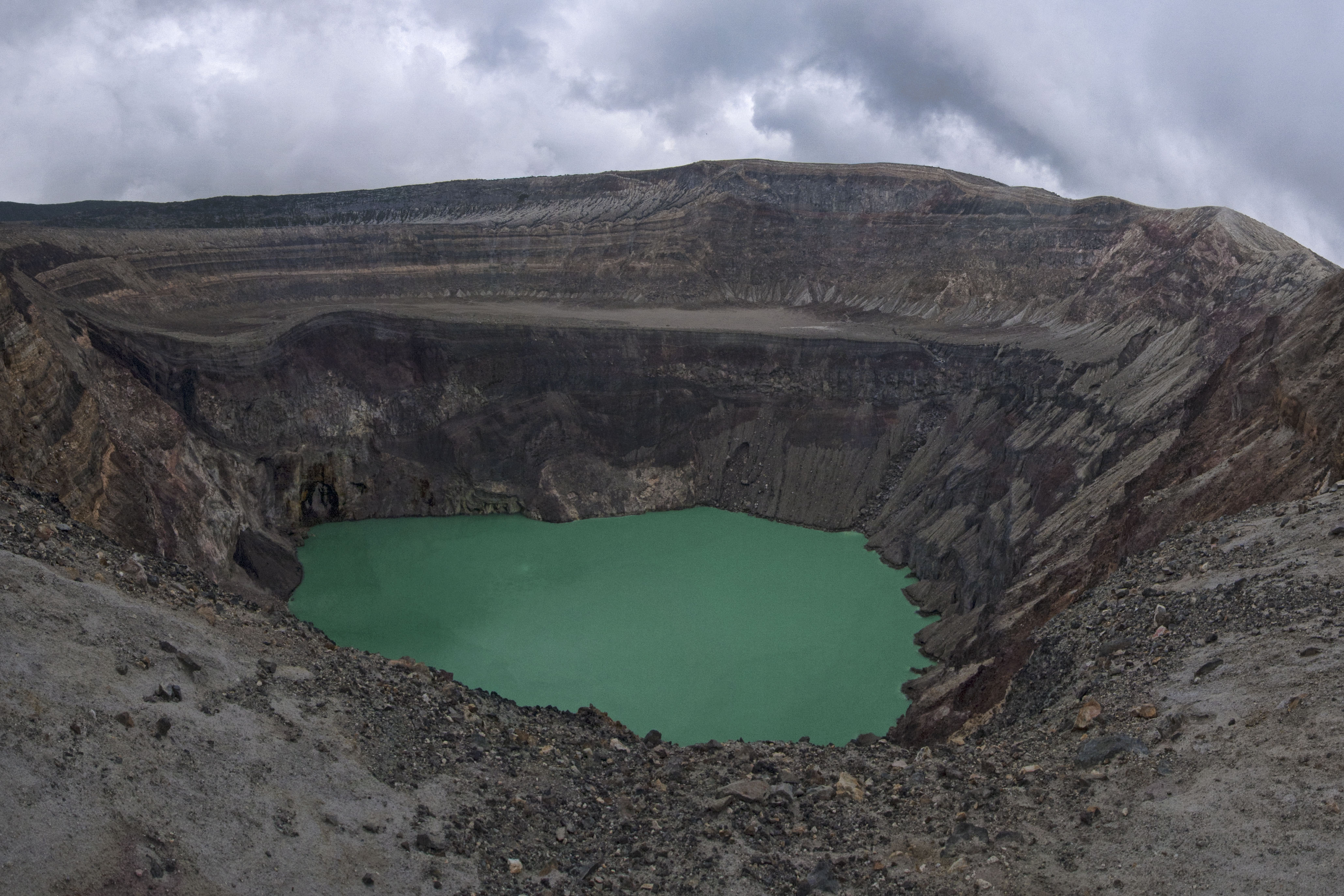 The hike first descended the side of the volcano we were on and the views were obscured by cloud which was rolling in and out. Then there was a slog up Santa Ana itself. It took 2 hours to walk to our destination which was a the beautiful crater lake of the Santa Ana volcano. There was a slight sulphurous smell and the waters of the lake were a vibrant green. Unfortunately the views off the volcano were obscured by cloud.
