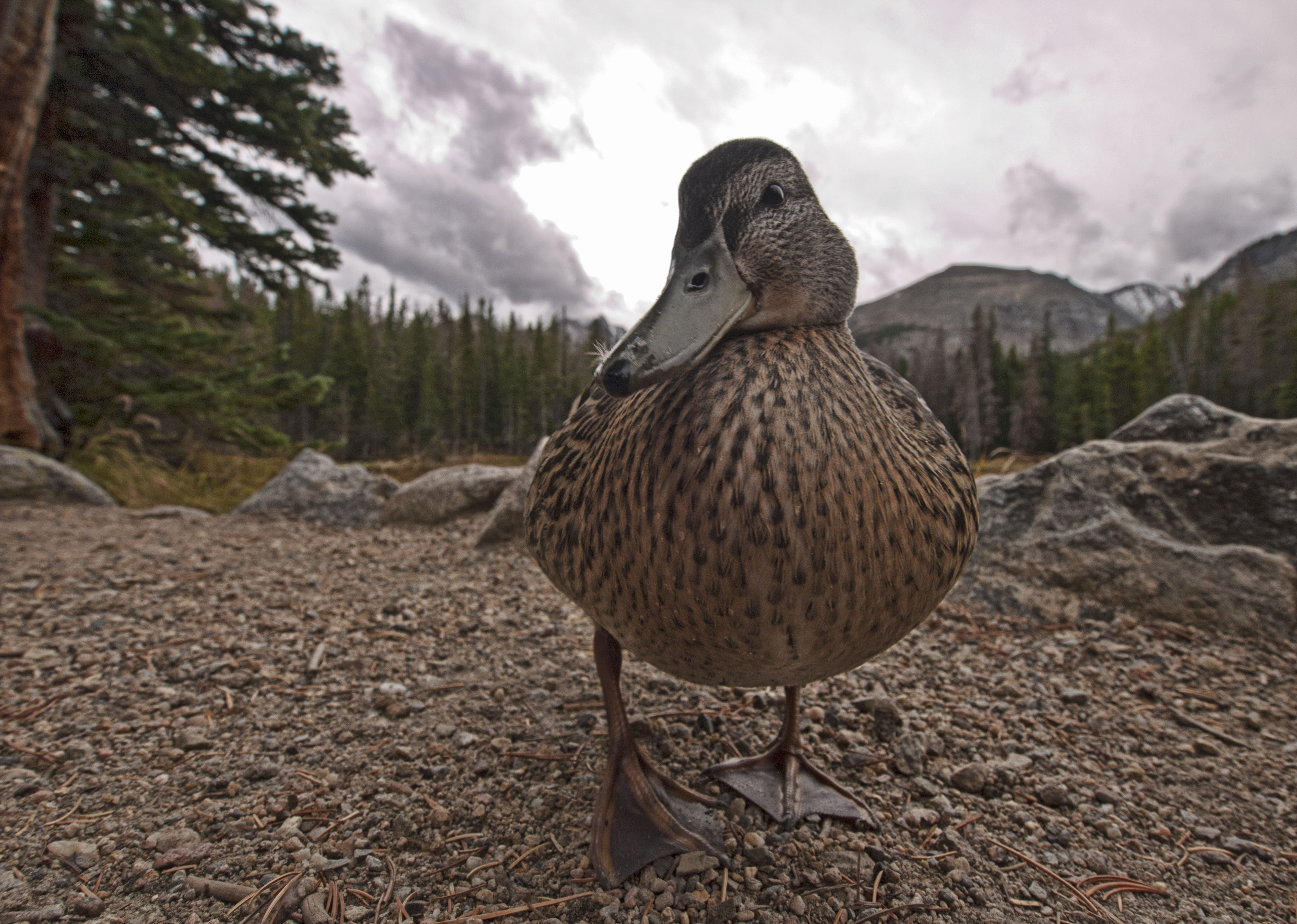 The next day we awoke to blue skies and what looked like a lovely day. We set off for Bear Lake which was the trailhead for a 3 mile walk to three lakes – Nymph, Dream and Emerald. These were simply stunning. On the way back we sat down to admire Nymph lake and we were joined by a very friendly duck who came right up to us – obviously used to handouts.