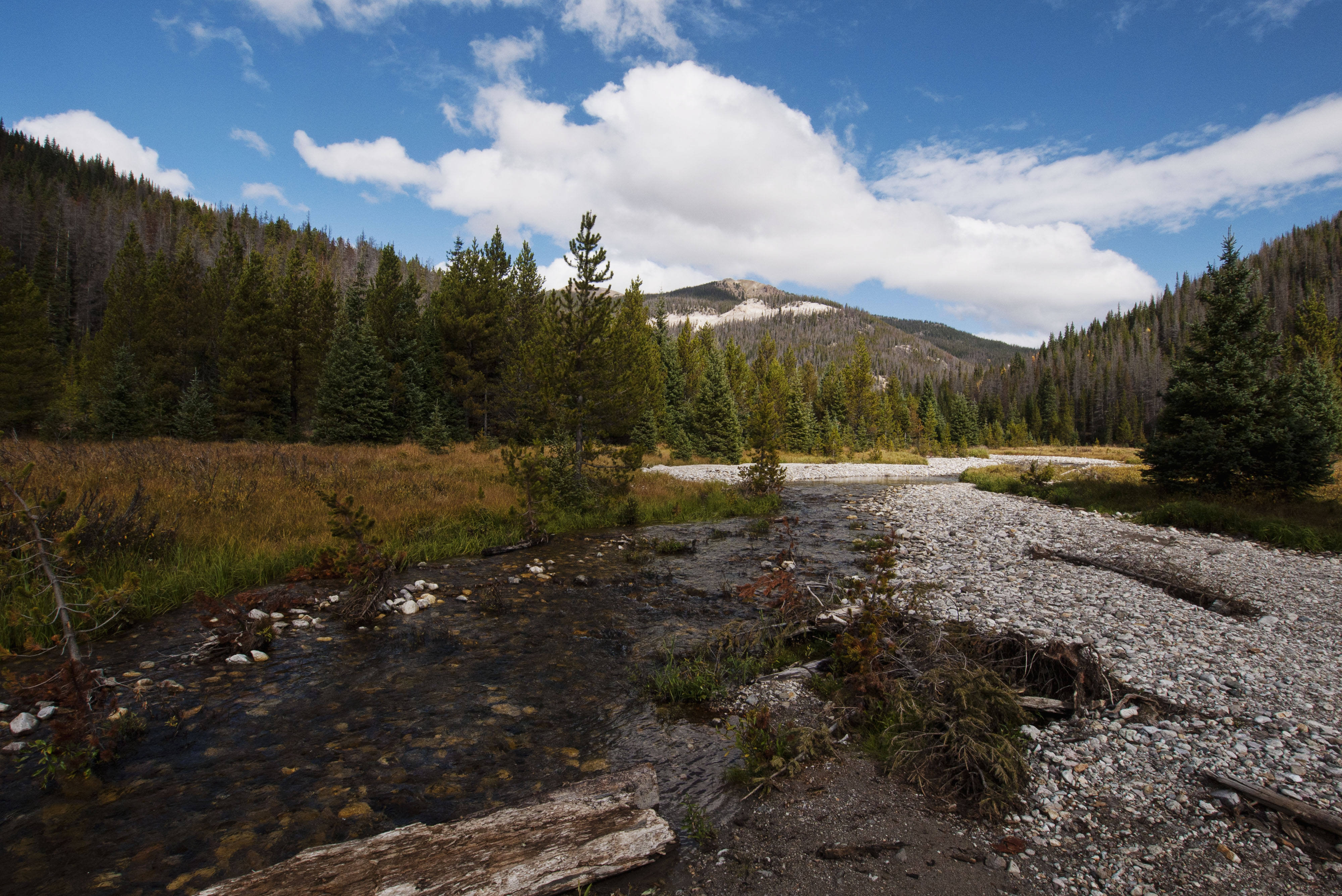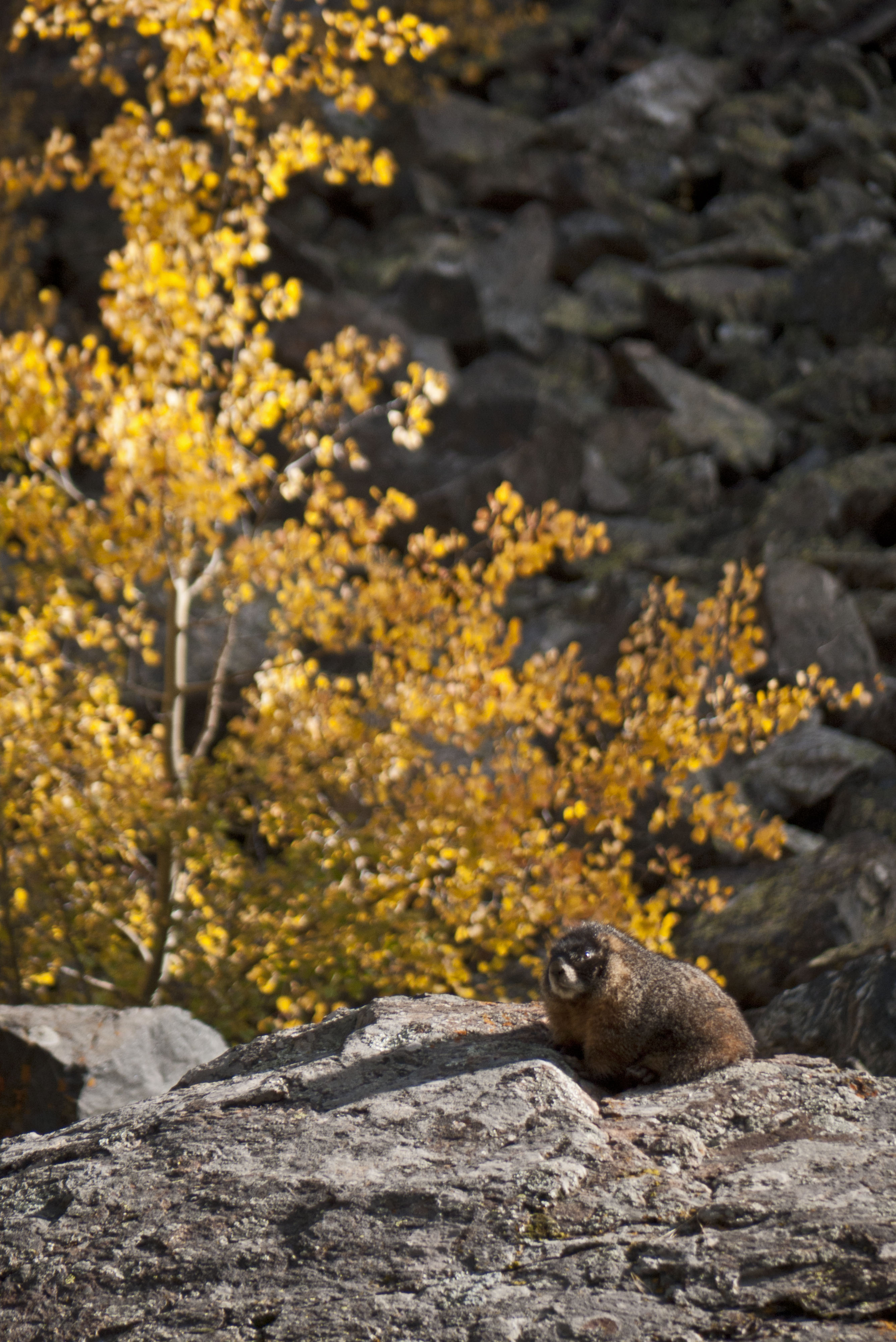 After a night filled with the high pitched bugles of mating elk we woke to a fog covered world. Fortunately within an hour the fog cleared and the sun came out.