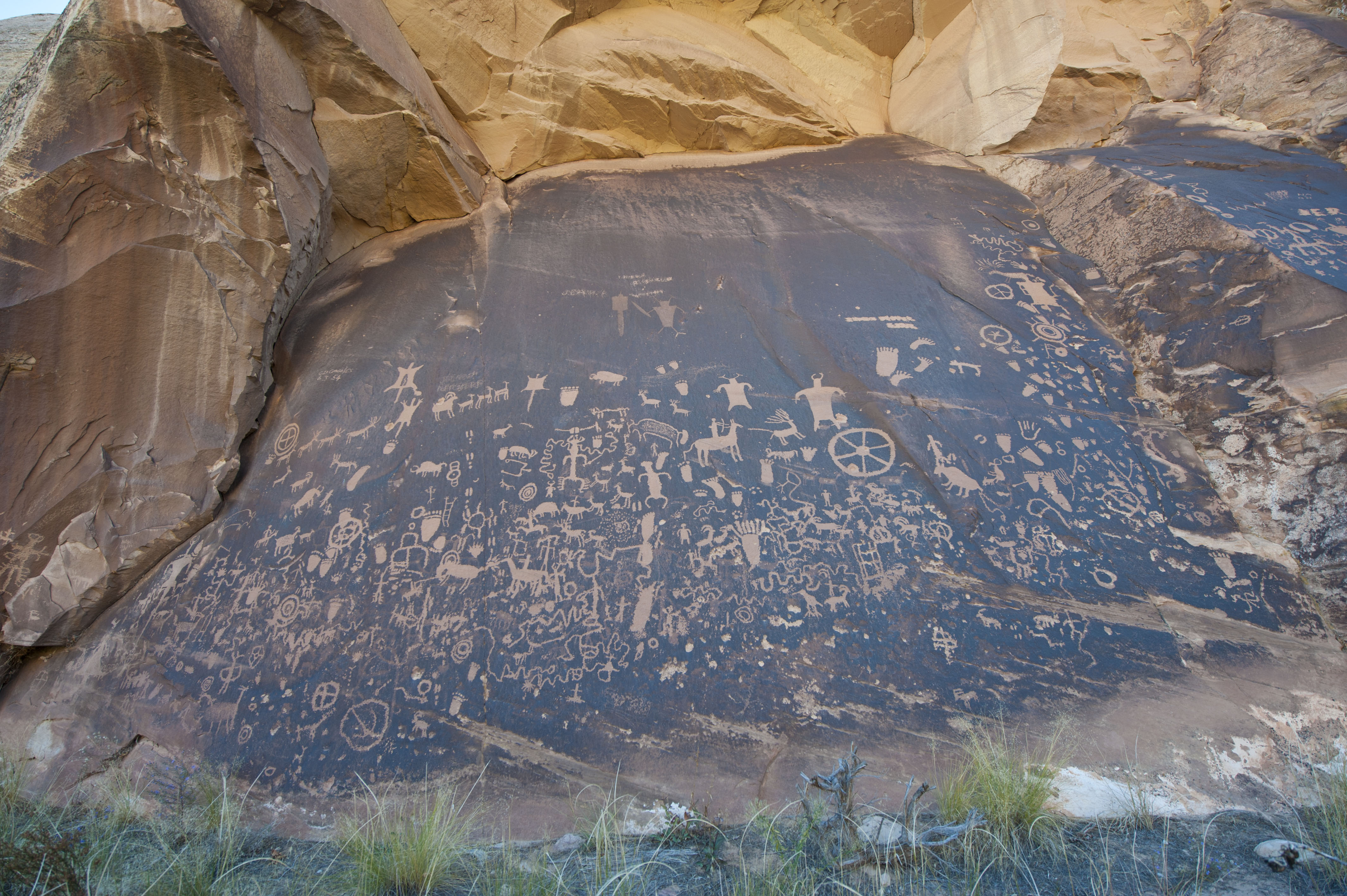 After making it back we drove just outside the park and found a free campsite near the BLM Hamburger rock campsite and settled in for the night and a BBQ. On the way out we also checked out the Newspaper Rock which is an area of Desert varnish that has so ancient markings on it – and some not so ancient.