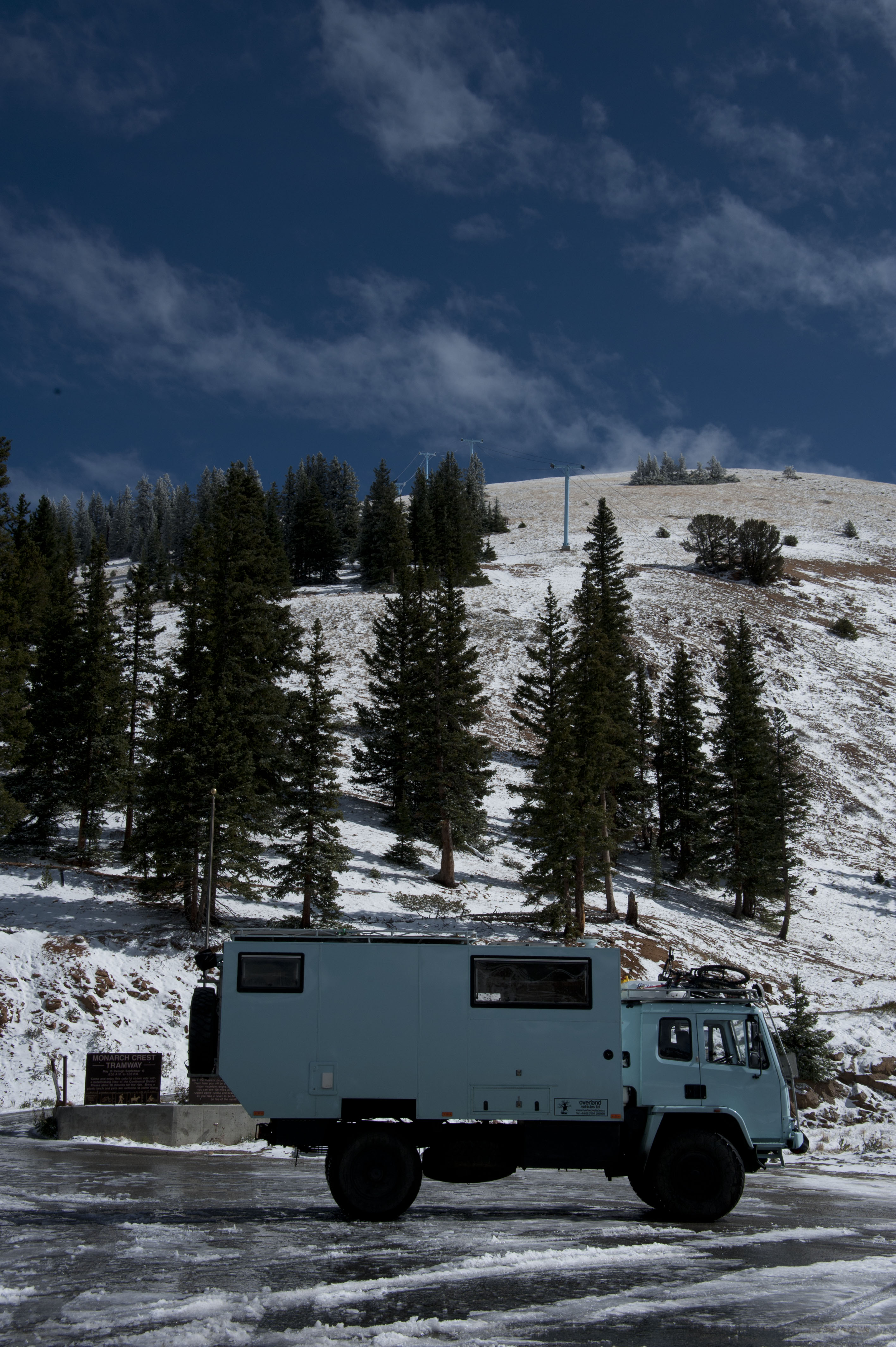 On leaving Rocky Mountain National Park we managed to drive around 100 miles before nightfall. We found a turnout on the highway to spend the night. Unfortunately we hadn’t escaped the weather and the night was very cold – down to -4c outside and when we woke up only 3c in the camper. Wow. There was some light snow in the night but it had melted by morning. The mountain tops got some proper snow though.