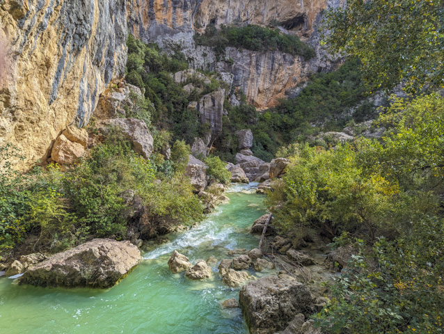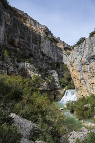 After tearing ourselves away from Zaragoza we carried on heading West towards the town of Ainsa. But first we stopped off at the waterfall at Salto de Bierge. This would be very busy in the summer season with a swimming beach above the falls, but in October everything was shut and no one was around.