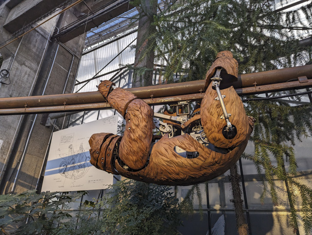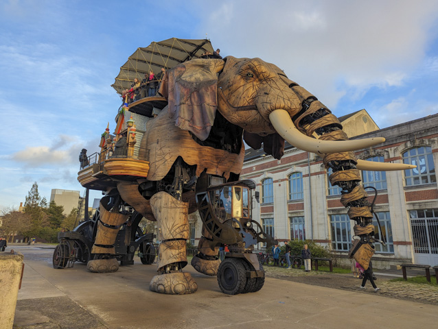 After learning about the history of Nantes we headed across town to Les Machines D’Ile which is a madcap steampunk workshop showcasing bizarrely constructed moving animals. It’s as though computers and electronics were never invented and all the exhibits are mechanical. The highlight is definitely the massive elephant which is 12 meters tall and takes people on rides around the area while blowing steam from its trunk.