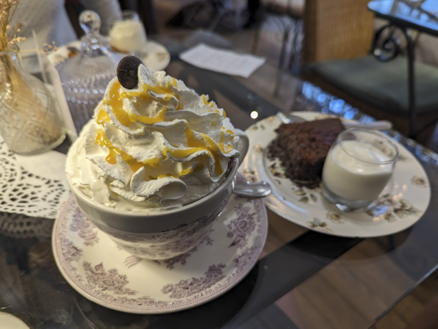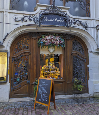 We found an amazing and very posh tea shop in one of the medieval streets where we stopped for a hot chocolate and a slice of cake. Very expensive but absolutely delicious.