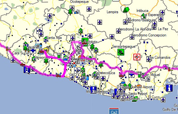 This page will show the route we have taken across the Americas. After we have finished each country we will post a map of our route taken from Garmin Mapsource.