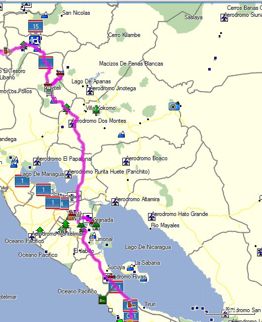 The major sites in Nicaragua are all of the PanAm which means that the best route is from the NW through to the SE of the country.