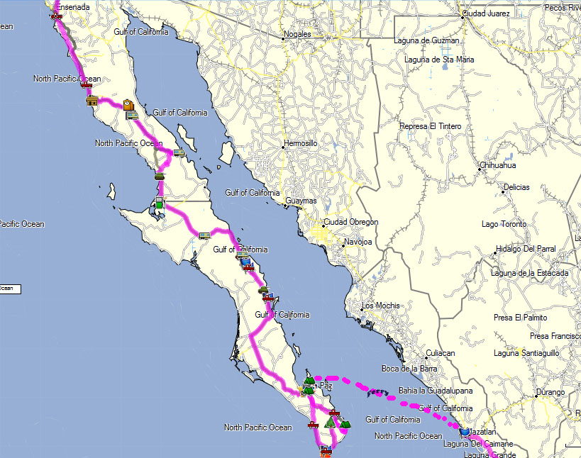 We entered Mexico at the Tecate border crossing from California and headed down Baja to La Paz where we caught a ferry to the mainland.